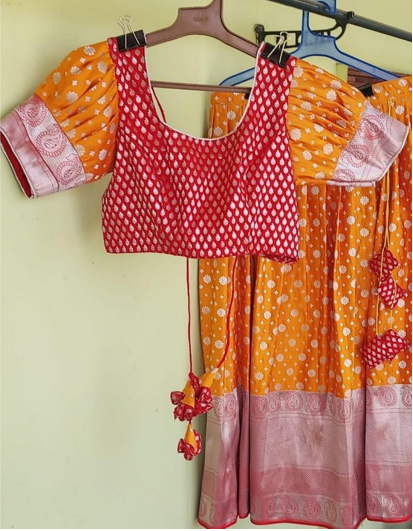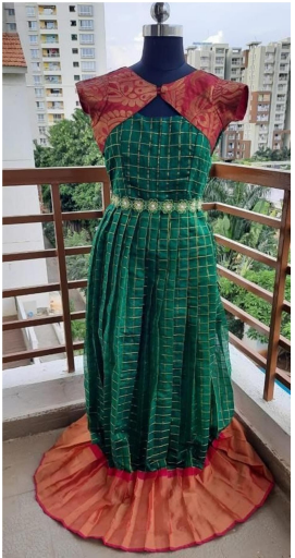 When it comes to designer fabrics, Sindhu loves to play around with colours and trims no holds barred. Her colour pops of blue-yellow, mint green-periwinkle and red-bottle green make for interesting combinations to showcase the shimmery pleats and adornment addons on her fabric.